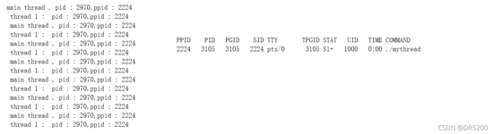 printf("main thread , pid : %d,ppid : %d\n",getpid(),getppid());