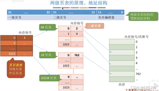 (1). 将逻辑地址分为3部分,根据后10位找到对应内存块的二级页表