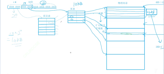 10组,维护一个页目录表,用来记录每组的内存块号,页目录表的大小 2 ^10 * 4B = 2^12B = 4KB