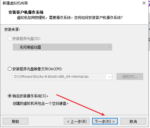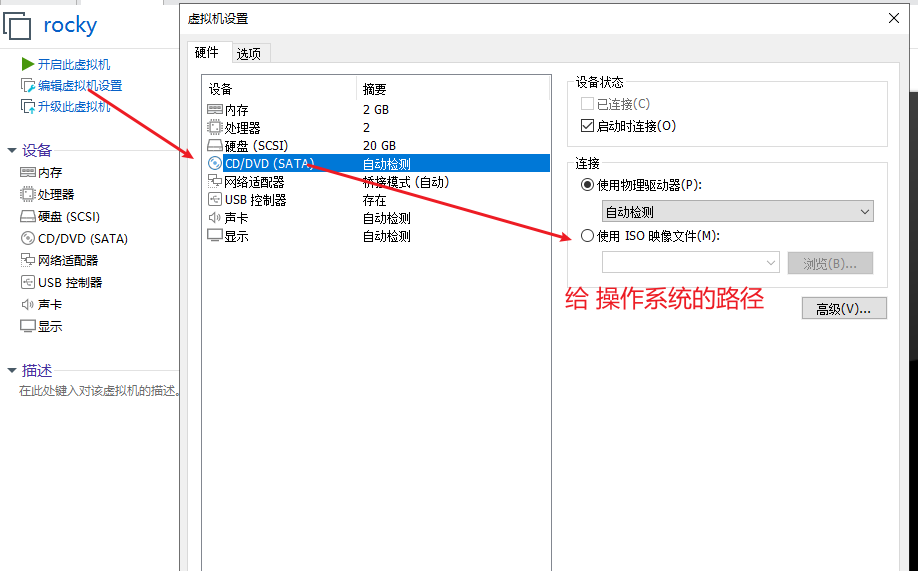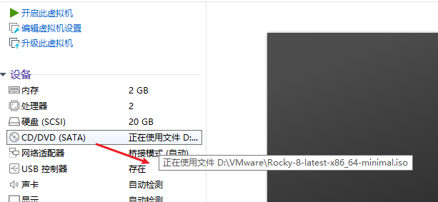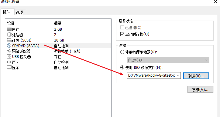 是我们下载好的 Rocky-8-latest-x86_64-dvd.iso 文件地址