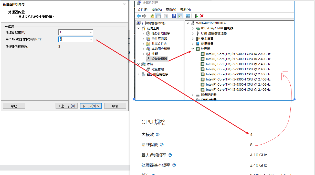 分配处理器,我的是单核cpu 4个处理器,8线程的,所以分了2个给虚拟机