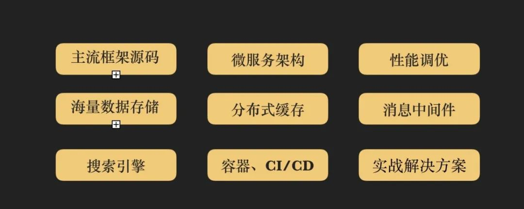 课程注重实用性,符合企业需求的技术能力框架,分成框架设计能力、微服务架构能力、海量数据存储解决方案、分布式架构中间件等 12 个阶段,通过 6 个月有计划的刻意训练,循序渐进地帮助你提升技术能力。
