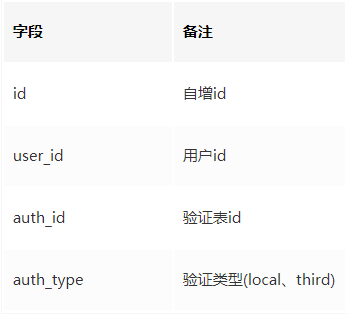 user_auth_rel是用来关联我们users表与user_local_auth、user_third_auth。