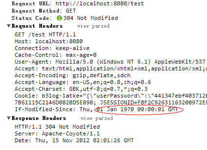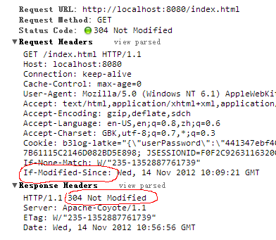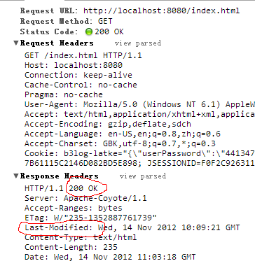 浏览器也很聪明,当你再次(点击链接,或者F5,或者回车,但是不能是ctrl+F5)请求这个资源时,浏览器会询问server这个资源自上次告诉我的最后修改时间以来有没有被修改(请求头中If-Modified-Since)。(见图二)