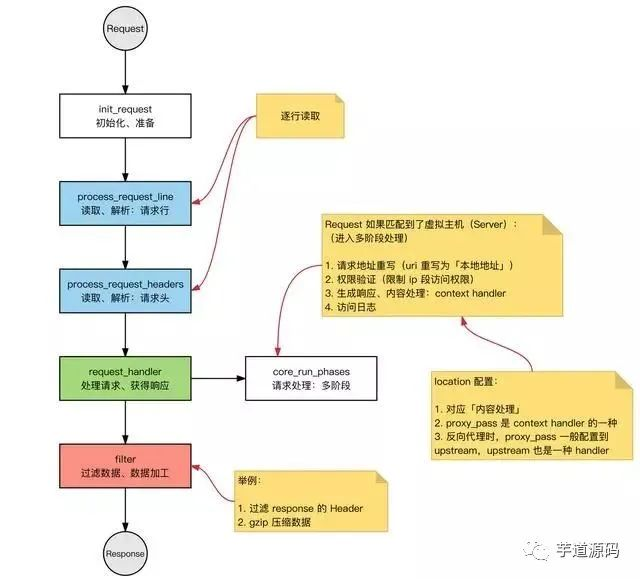 ②phase handler: 此类型的模块也被直接称为 handler 模块。主要负责处理客户端请求并产生待响应内容,比如 ngx_http_static_module 模块,负责客户端的静态页面请求处理并将对应的磁盘文件准备为响应内容输出。