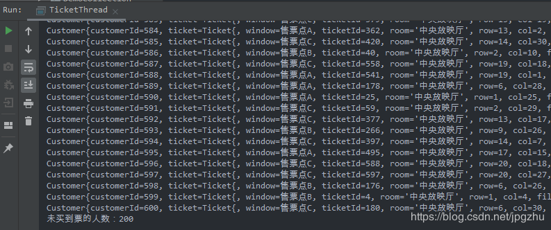System.out.println("未买到票的人数:" + (CUSTOMER_COUNT - customers.size()));