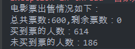 运行一下:总共只有600张票,买到票的人有614人?那进了电影院顾客肯定得投诉。