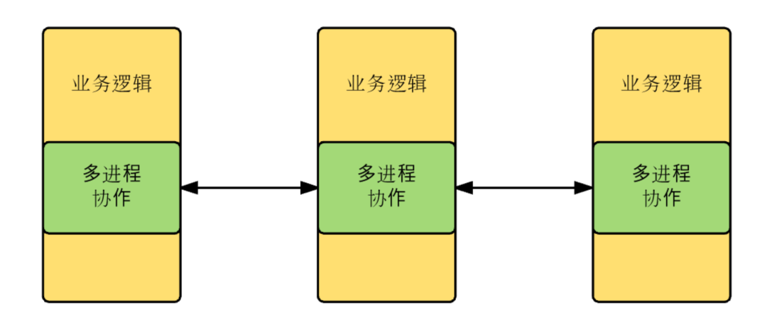 一个应用程序,涉及多个进程协作时,业务逻辑代码中混杂有大量复杂的进程协作逻辑。