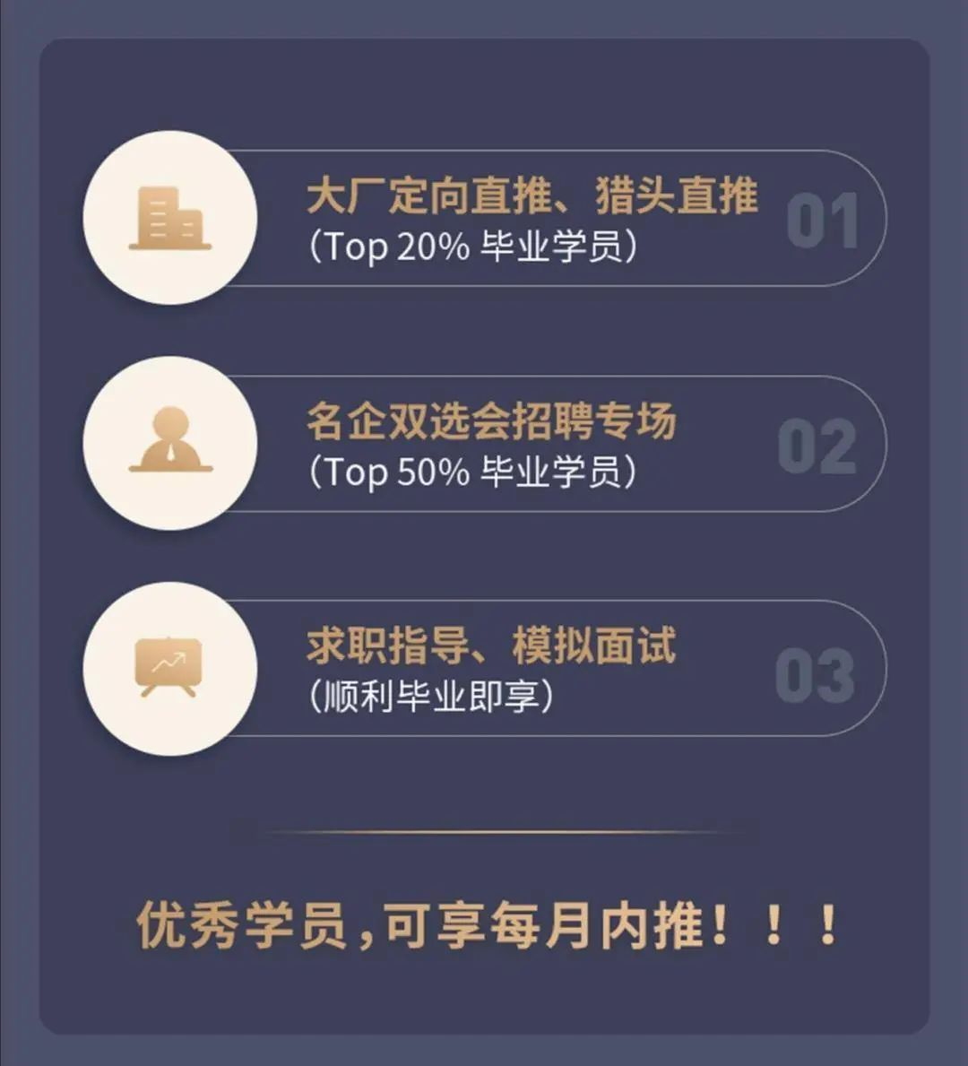 值得一提的是,学完就签订涨薪协议,优秀学员可享每月内推机会。