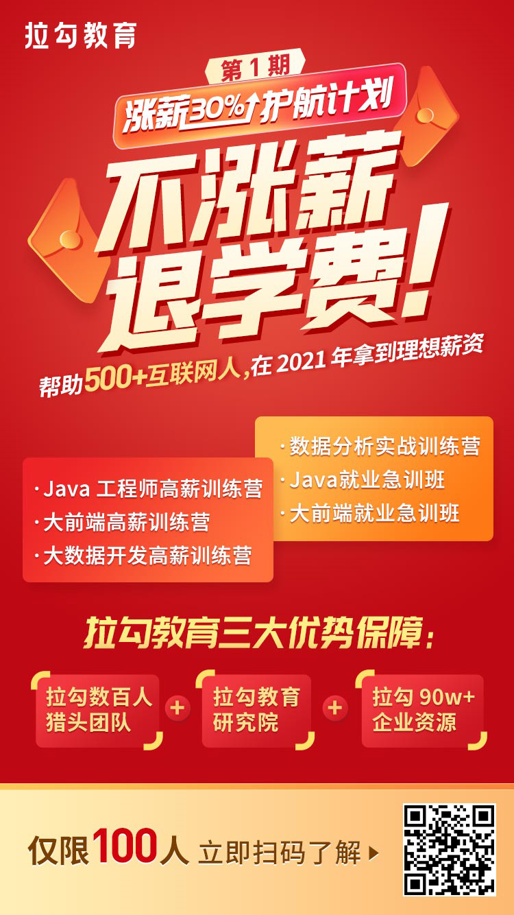 简单说,这个计划就是,只要你报名学习《Java工程师高薪训练营》,学完课程后,就能将你内推进互联网大厂,并保证涨薪30%的计划。