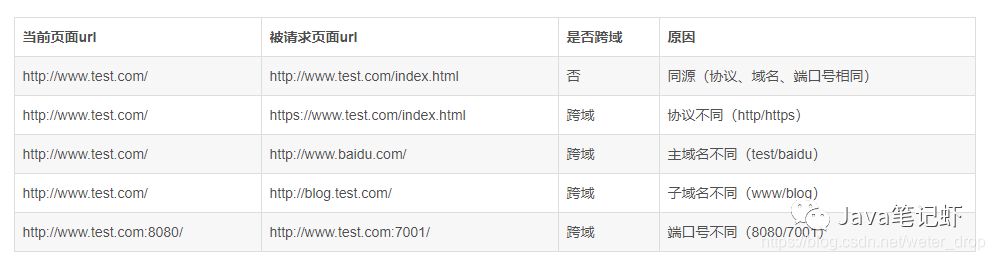 当一个请求url的协议、域名、端口三者之间任意一个与当前页面url不同即为跨域