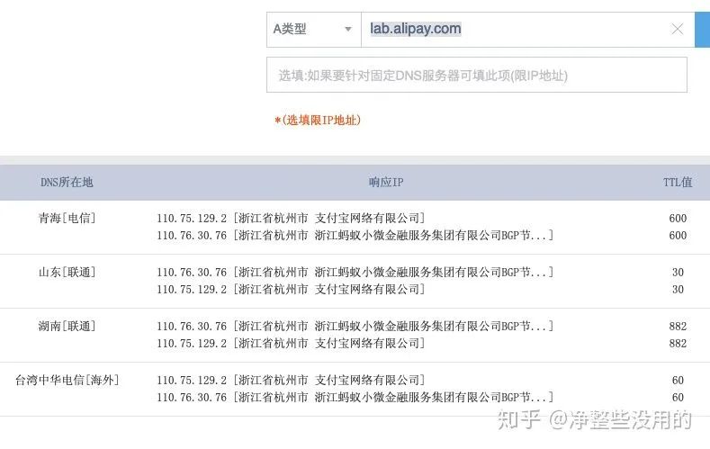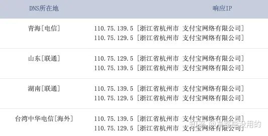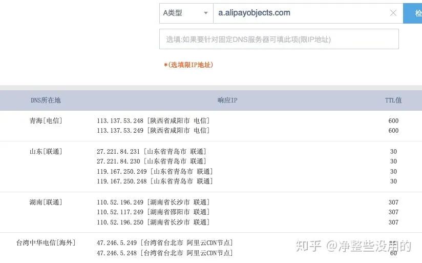 我们可以从侧面大致看一下「http://alipay.com」这个域名的DNS指向多少ip