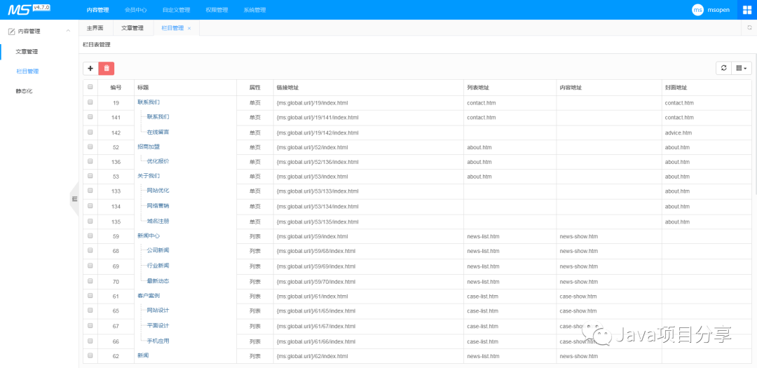 免费完整开源:基于MIT协议,源代码完全开源,无商业限制,MS开发团队承诺将MCMS内容系统永久完整开源;关注Java项目分享