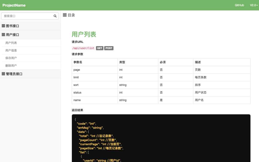 便捷的导航和接口查看界面;可本地预览,或者部署到 HTTP 服务器。推荐部署到服务器,方便前后端展开协作。