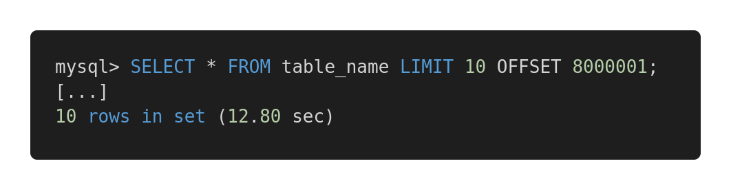 现在你应该知道这背后都发生了什么:OFFSET 越高,查询时间就越长。