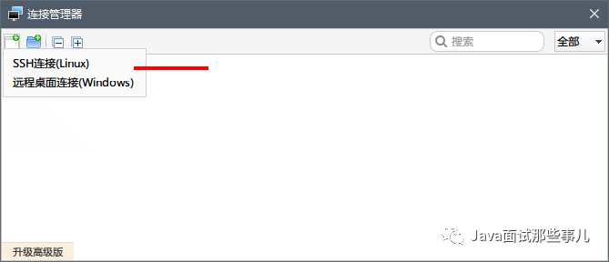 然后出现如图所示的功能菜单,可以连接linux服务器和windows远程桌面,这里我们先点击linux服务器