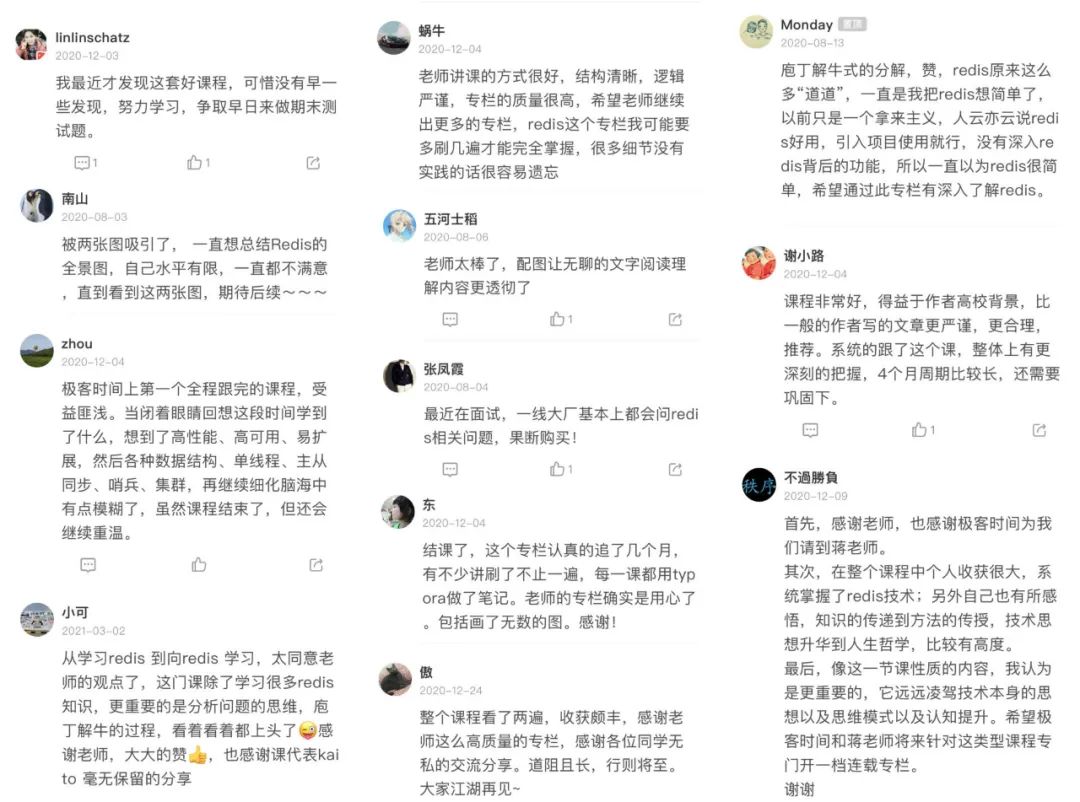 去年,订阅了他的专栏《Redis 核心技术与实战》,追着更新看了一遍,今年抽空又二刷了,不仅原理讲得透彻,实战性也强。很多问题之前没有深入思考过,跟着专栏敲代码测试和分析了源码细节,让我对 Redis 有了更深入的理解。发文前看了下,订阅已经20,000+ 了。