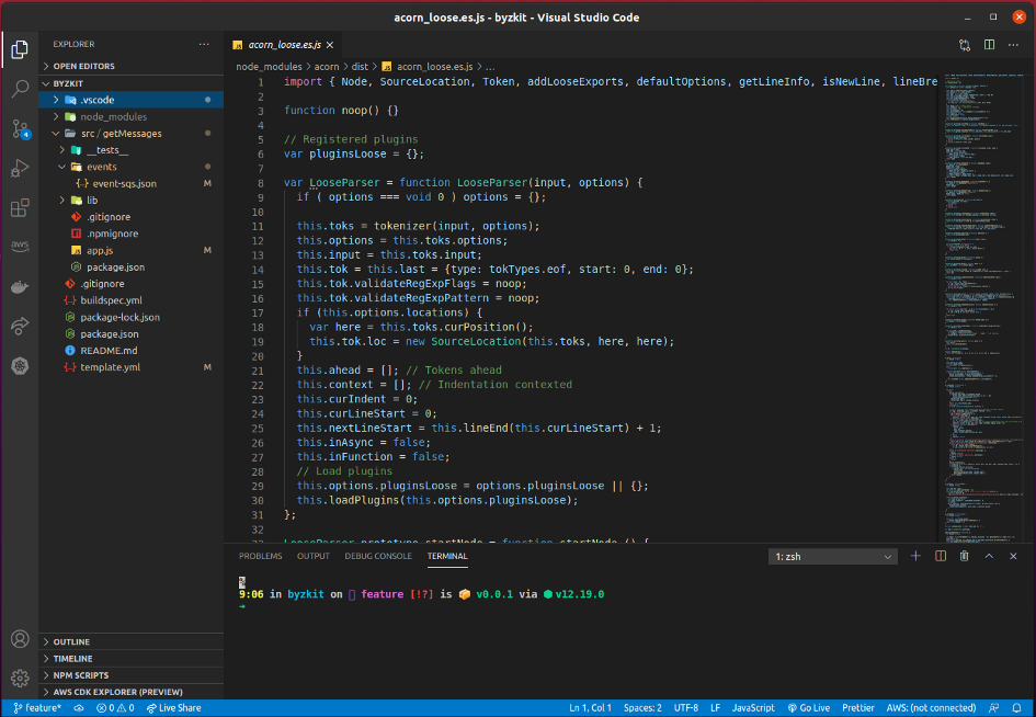 我更喜欢的另一个文本编辑器是VSCode。它是轻量级的,VSCode的一大特点就是你可以通过多种方式来调整设置,而且Vim可以和VScode集成在一起,它还带有一个集成终端,可用的扩展太多,使开发人员的工作变得更加轻松。我最喜欢的一些扩展是AWS Toolkit,ESLint,Live Server,Live Share,Prettier —代码格式化程序,YAML,Live Sass编译器,Docker等。