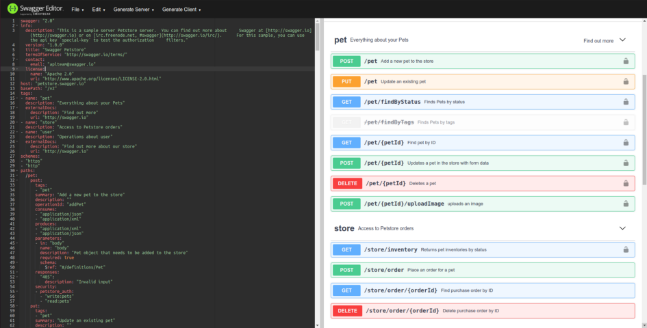 Swagger Editor是一款非常不错的API开发工具,专门用于生成一个具有互动性的API控制台,开发者可以用来快速学习和尝试API。还可以生成客户端SDK代码用于各种不同的平台上的实现。Swagger Editor是使用OpenAPI规范(以前称为Swagger)的简单方法,它支持Swagger 2.0和OpenAPI 3.0。