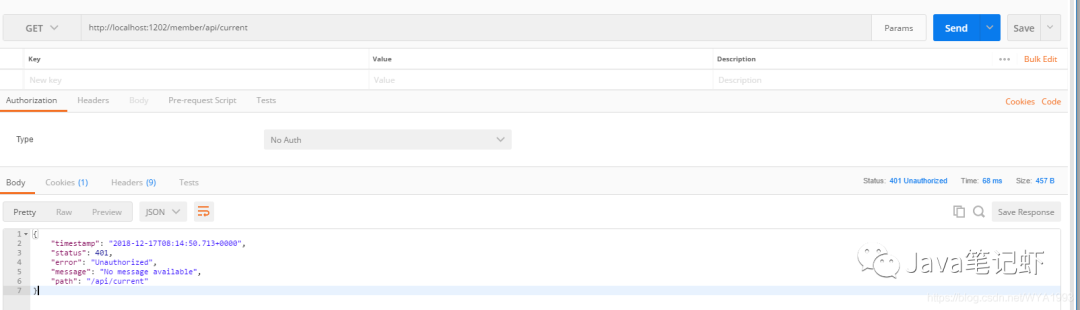 原因是在发起请求的时候没有添加Basic Auth认证,如下图:
