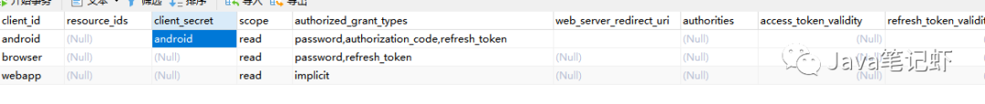 然后在eshop_member数据库创建数据表,将客户端信息添加到oauth_client_details表中