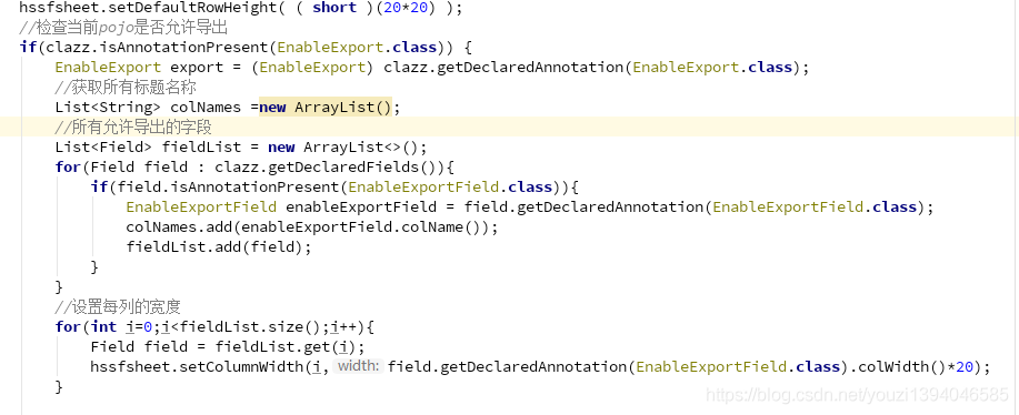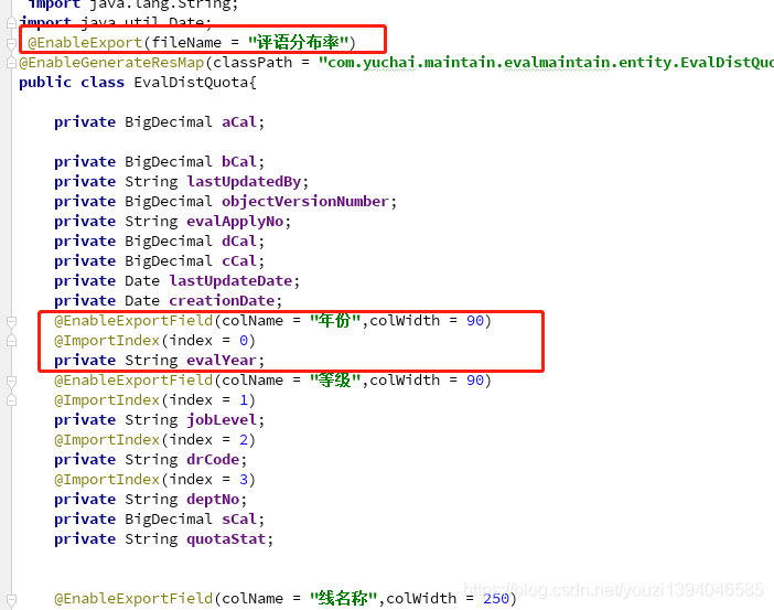 然后就是EnableExportField,有这个注解的字段才会导出到Excel里面,并且可以设置列宽