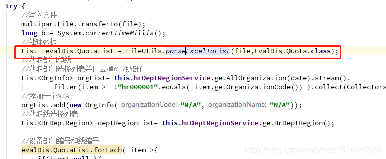 导入方法需要传入file文件,以及一个Class类型,导入之后将会返回一个list集合,里面的对象就是传入类型的对象,传入参数后只需一行代码即可导入