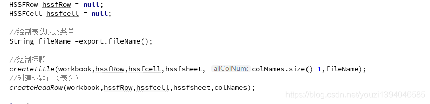private static void createHeadRow(HSSFWorkbook workbook,HSSFRow hssfRow , HSSFCell hssfcell,HSSFSheet hssfsheet,List<String> colNames){