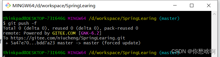 打开项目所在位置,打开git bash here 执行“git push -f ”,远程仓库的提交记录就没有了。