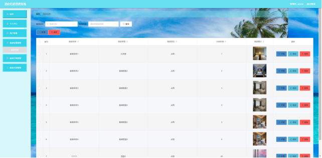 用户:首页、个人中心、客房信息管理、客房订购管理等