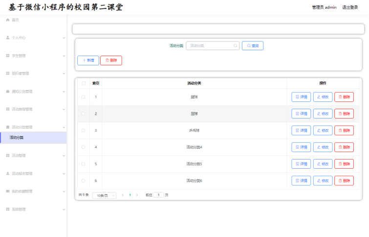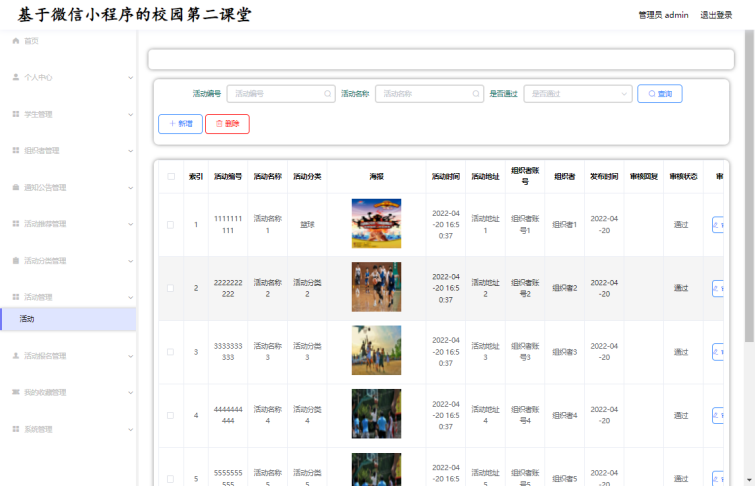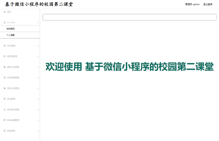 《微信小程序校园第二课堂+后台管理系统|前后分离VUE》该项目含有源码、论文等资料、配套开发软件、软件安装教程、项目发布教程等