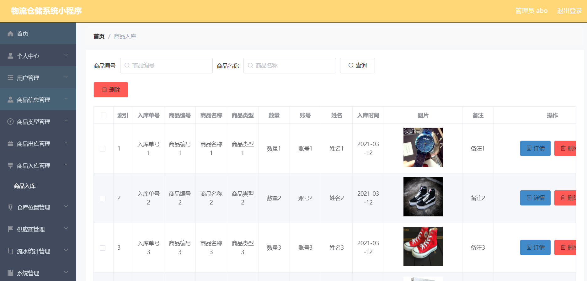 《微信小程序物流仓库平台+后台管理系统|前后分离VUE》该项目含有源码、论文等资料、配套开发软件、软件安装教程、项目发布教程等