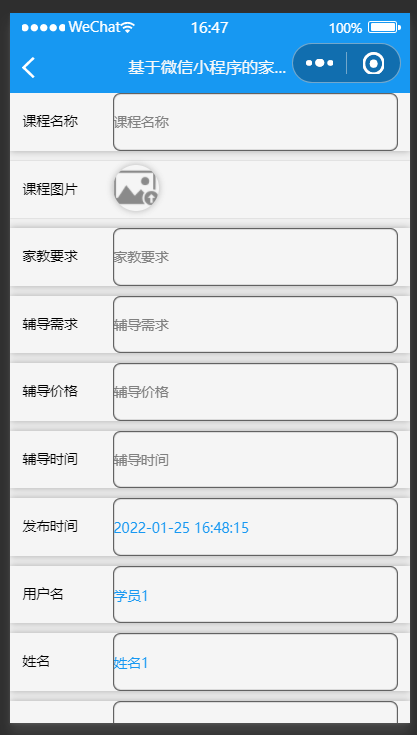 《微信小程序家教服务系统+后台管理系统|前后分离VUE》该项目含有源码、论文等资料、配套开发软件、软件安装教程、项目发布教程等