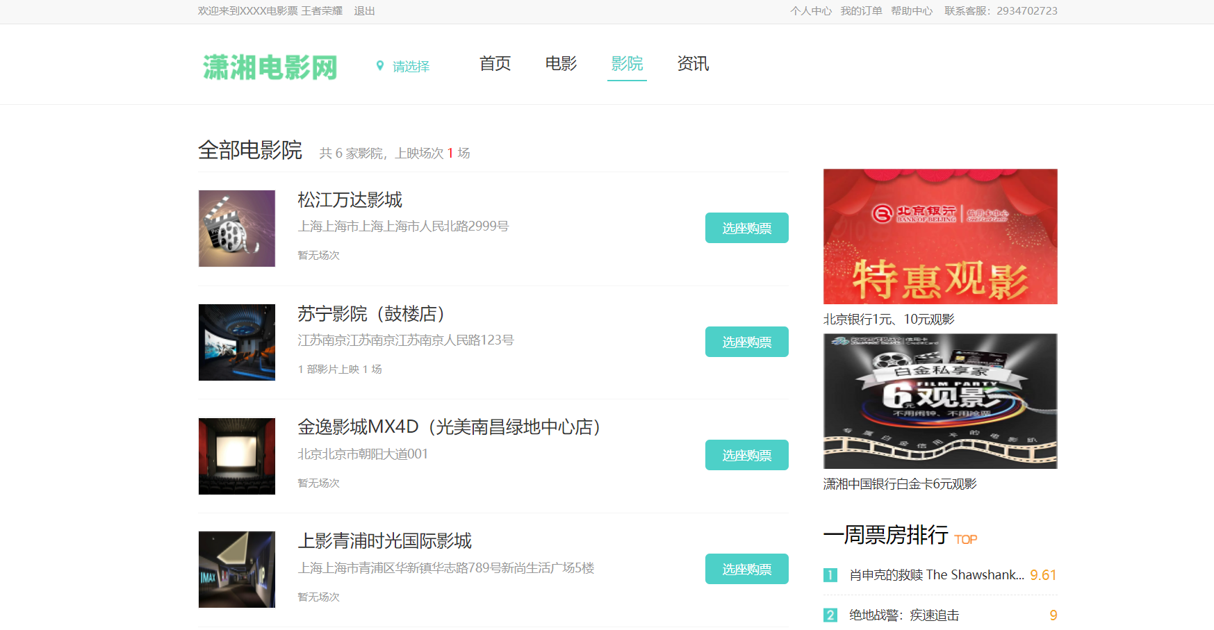 2)影院信息浏览查看,包括各影院上映场次数