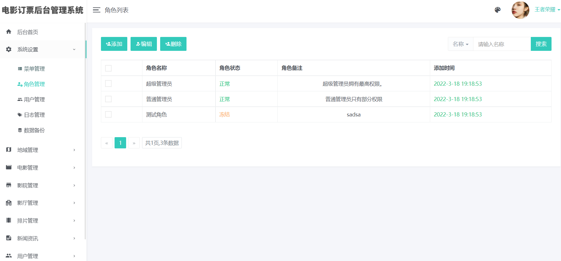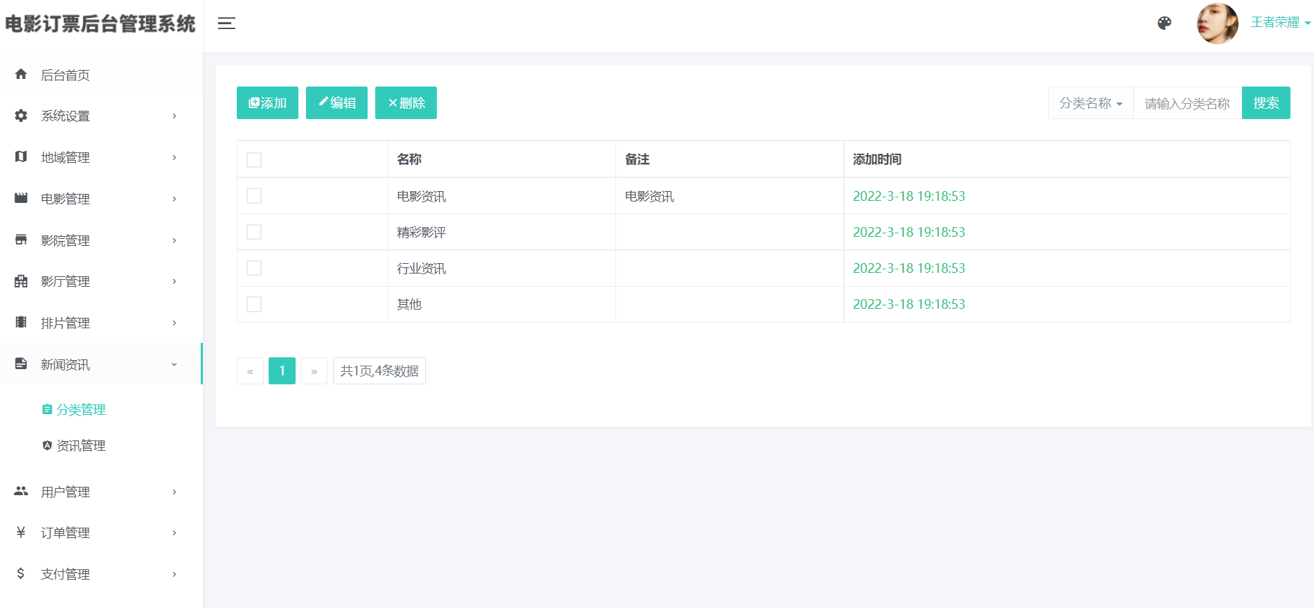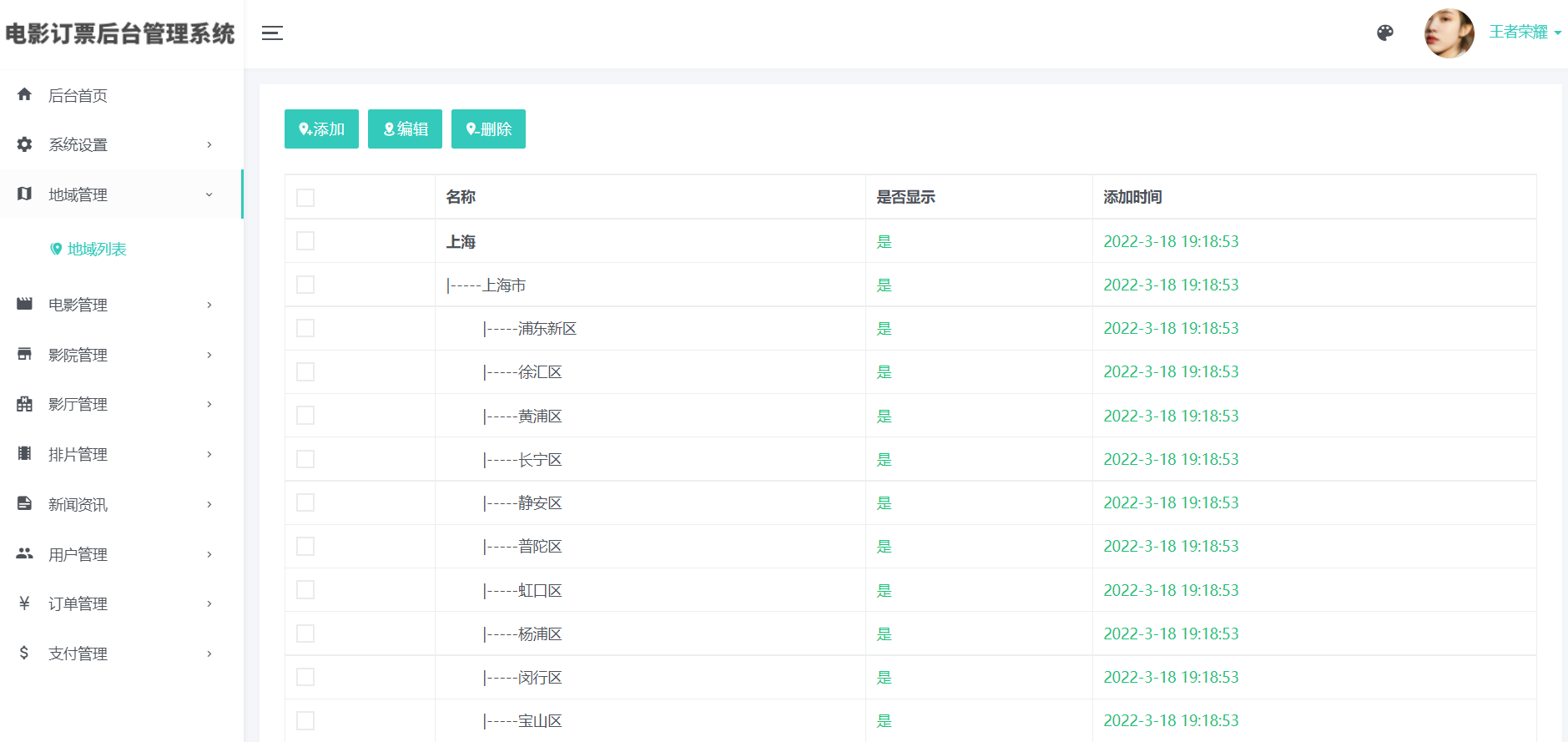 3)影院管理(添加、编辑、删除:支持上传图片)、影院评价管理