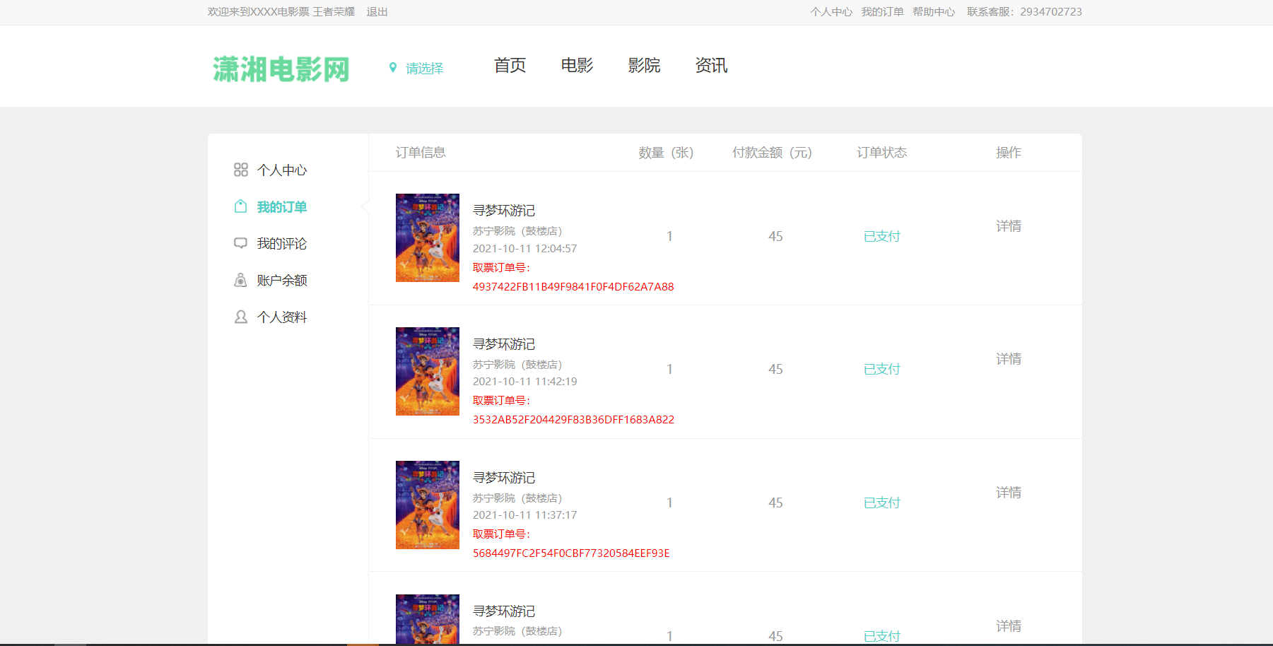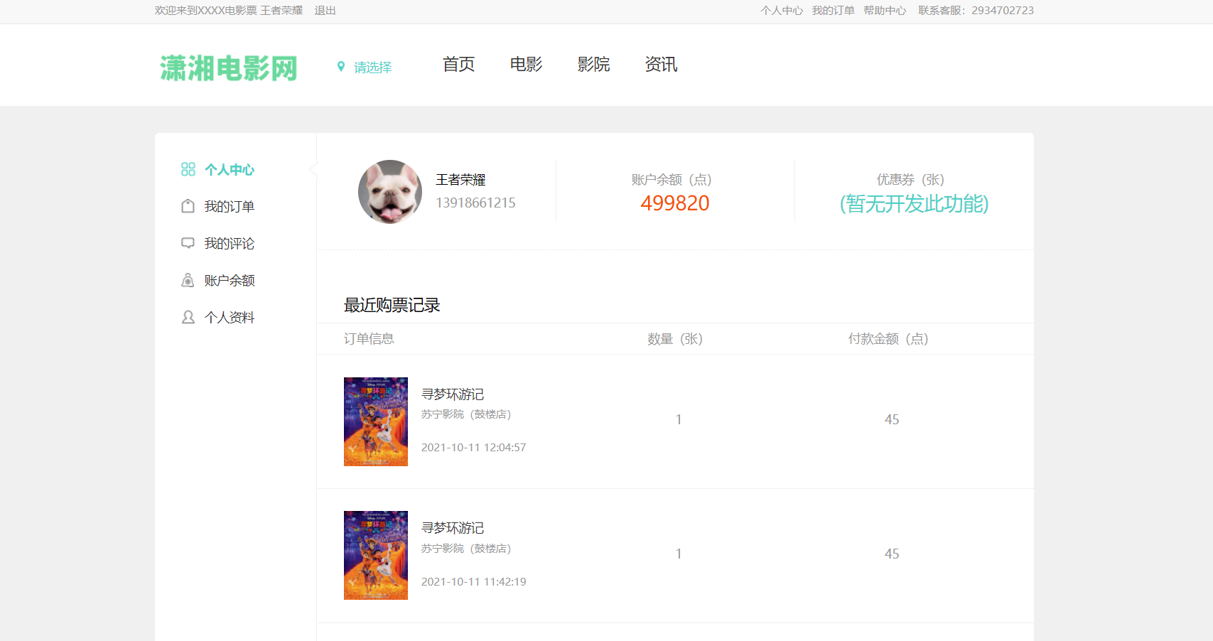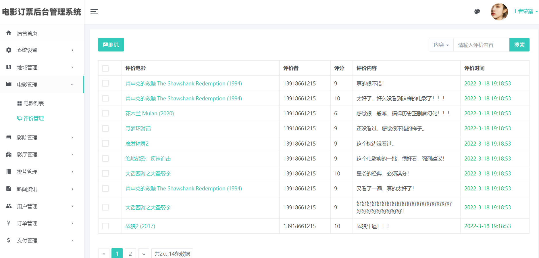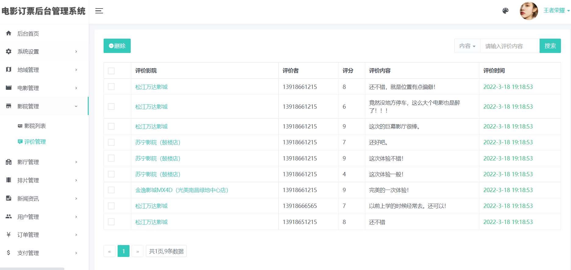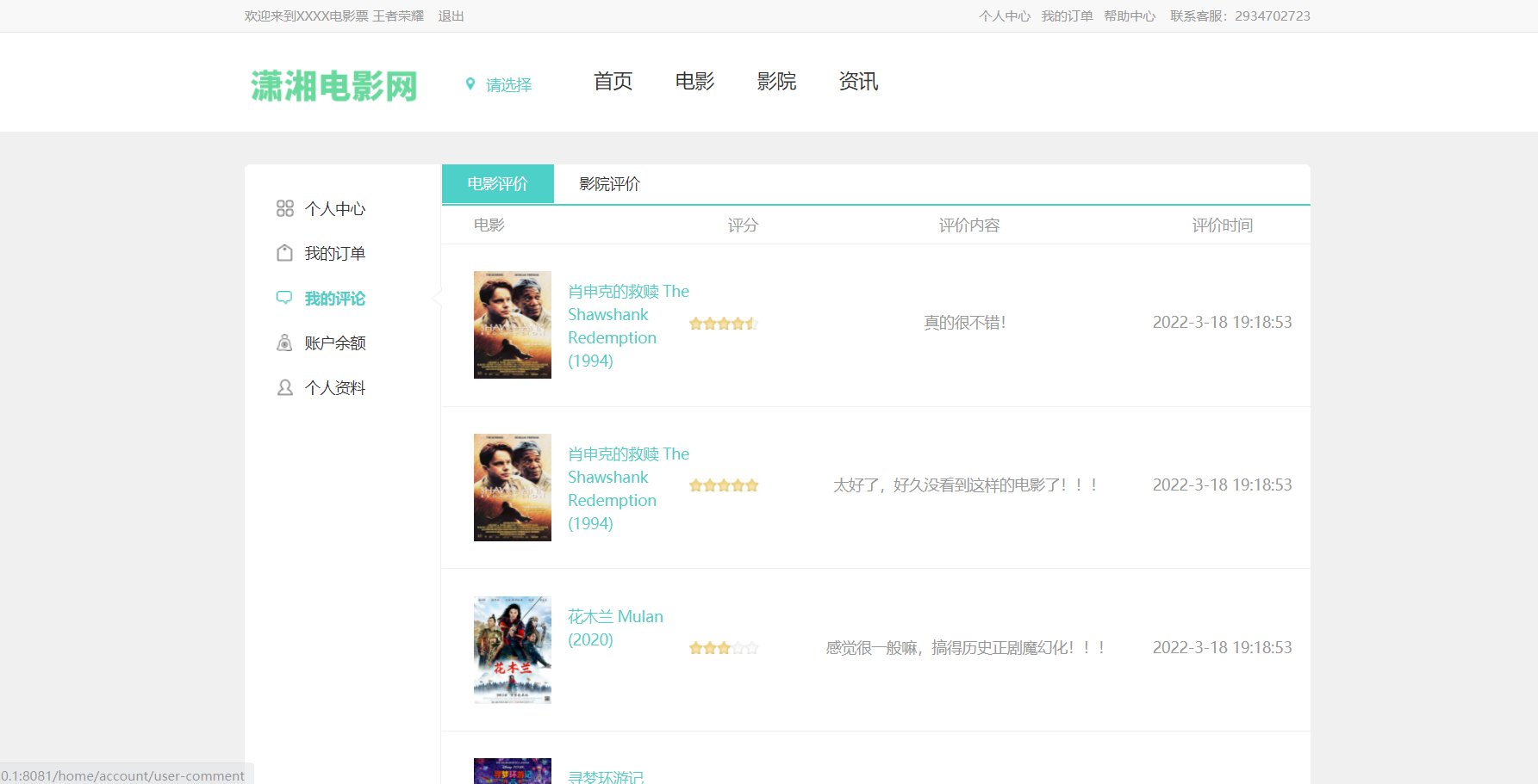 12)用户中心电影评价、影院评价管理