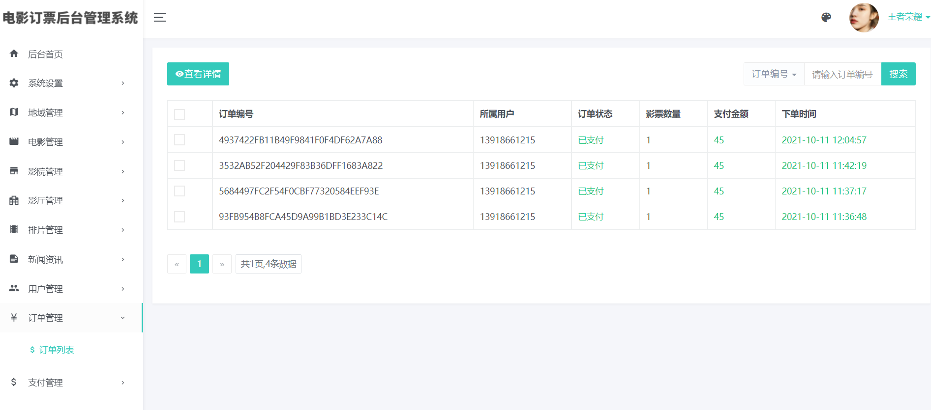 8)订单管理(查看全部系统订单)