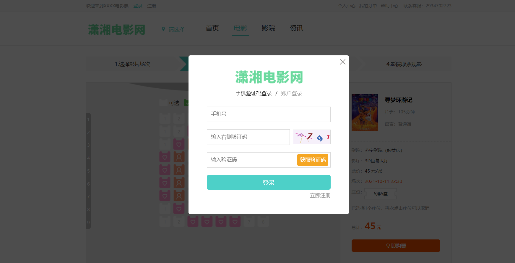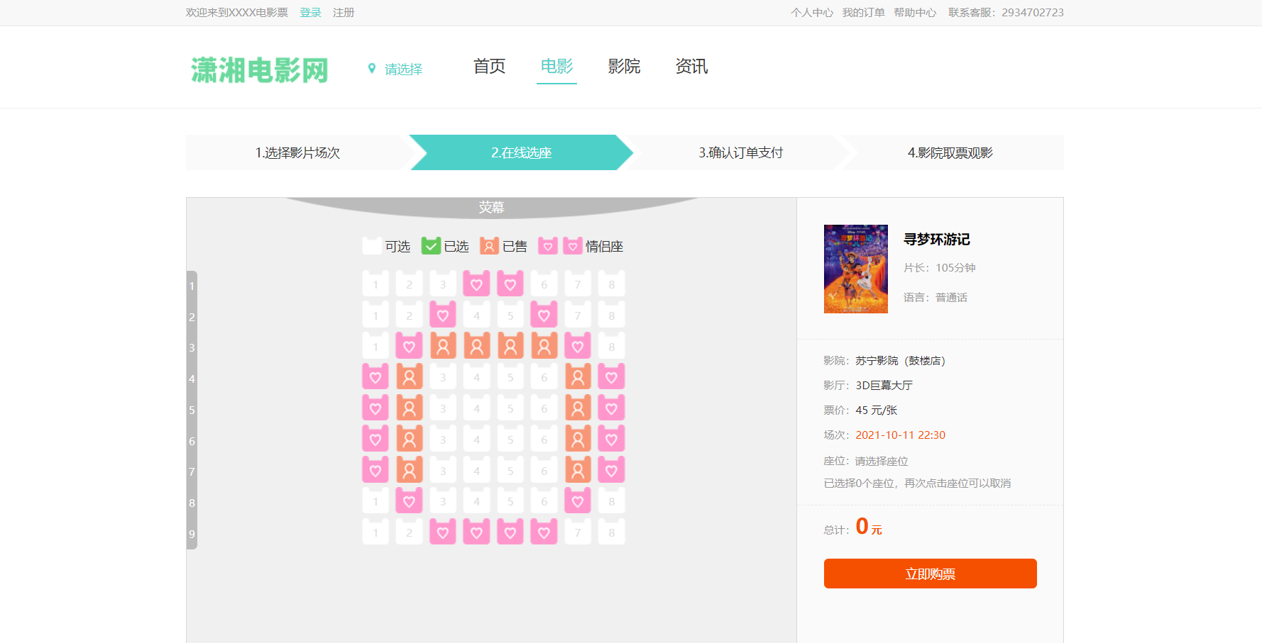 7)在线选座、选定座位后生成订单并支付