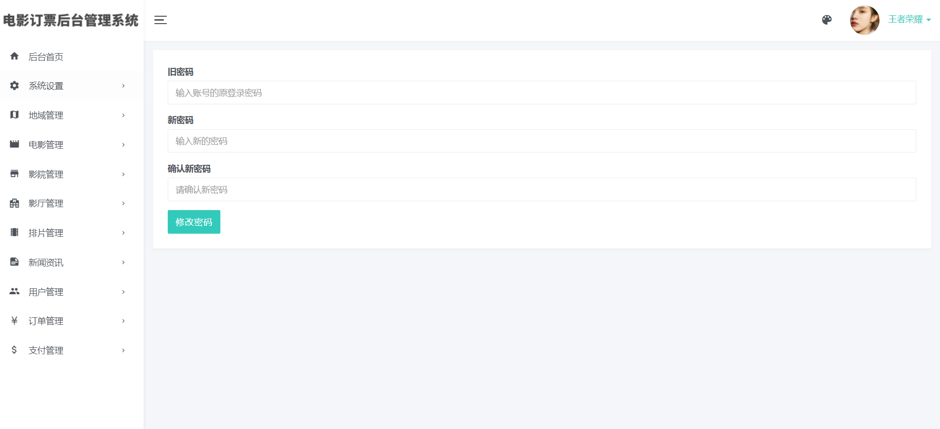 10)用户个人中心个人资料修改,包括密码修改,头像修改等,头像修改支持自定义裁剪图片