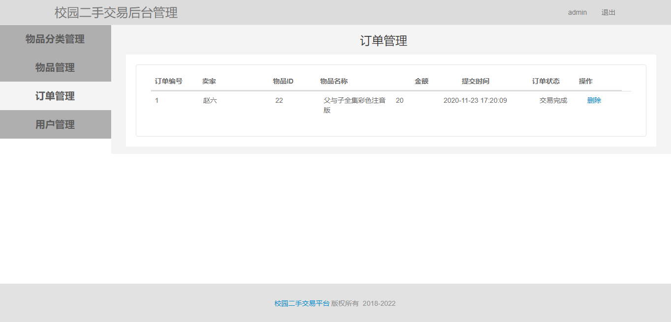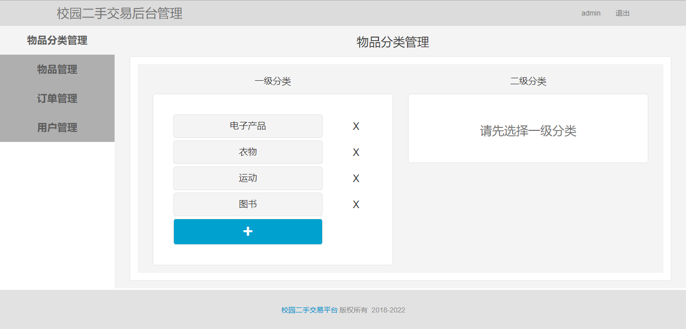 管理员:登录系统,物品分类管理、物品管理、订单管理、用户管理。