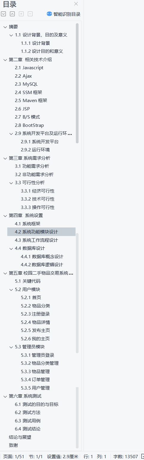 这是一个基于Java的校园二手商品交易系统,采用SSM(Spring、SpringMvc、Mybatis)框架和MySQL数据库。系统包括学生和管理员角色,学生可注册、购物、发布商品,管理员则负责管理分类、商品、订单和用户。资料包括源码、论文、软件教程,适合毕业设计或课程设计使用。