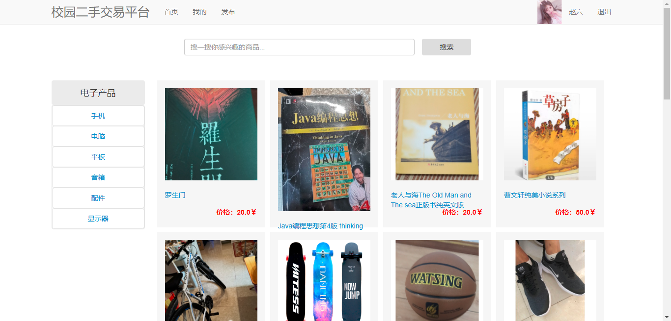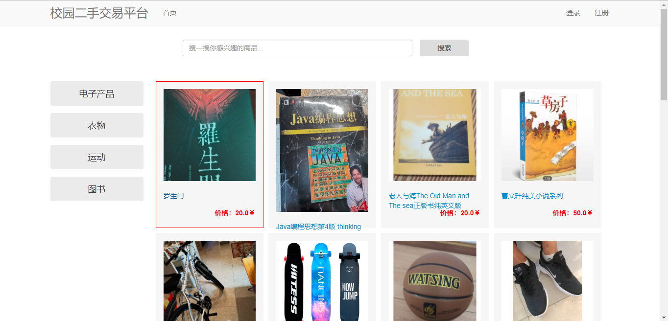 学生:注册、登录系统、查看搜索商品、查看商品详情,留言,购买商品;用户还可以发布商品;收藏物品;