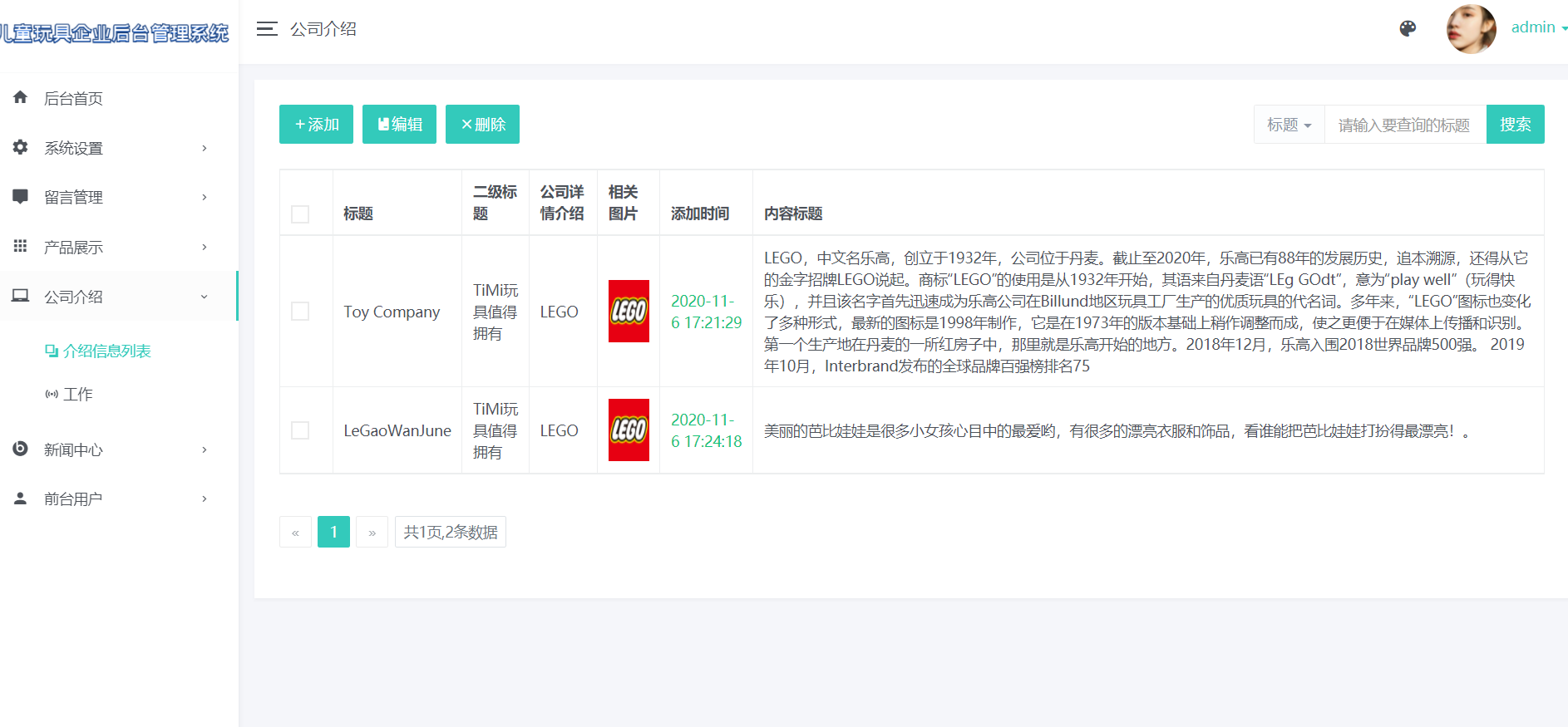 《基于Springboot+freemarker+Mysql实现的玩具企业官网》该项目含有源码、论文等资料、配套开发软件、软件安装教程、项目发布教程等