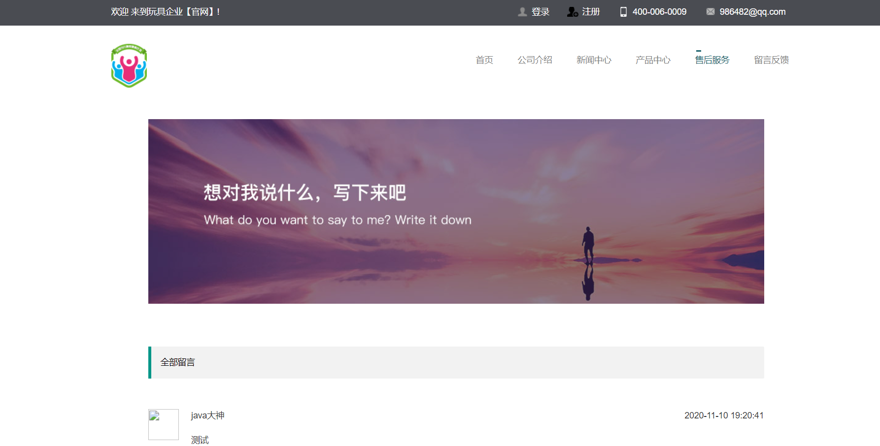 前台包含:用户登录退出、公司信息展示、新闻中心、产品中心、售后服务、留言反馈等