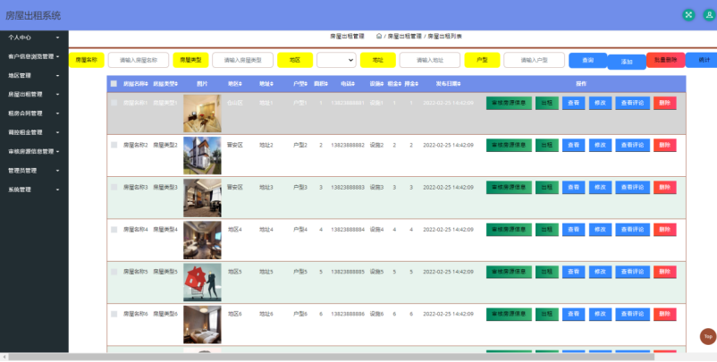 普通用户后台:个人中心、租赁房屋管理、保障申请管理、看房预约管理等