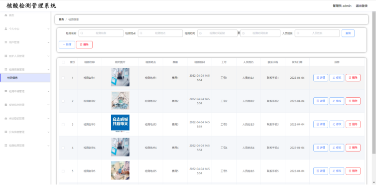 《springboot核酸检测管理系统》该项目含有源码、论文等资料、配套开发软件、软件安装教程、项目发布教程等