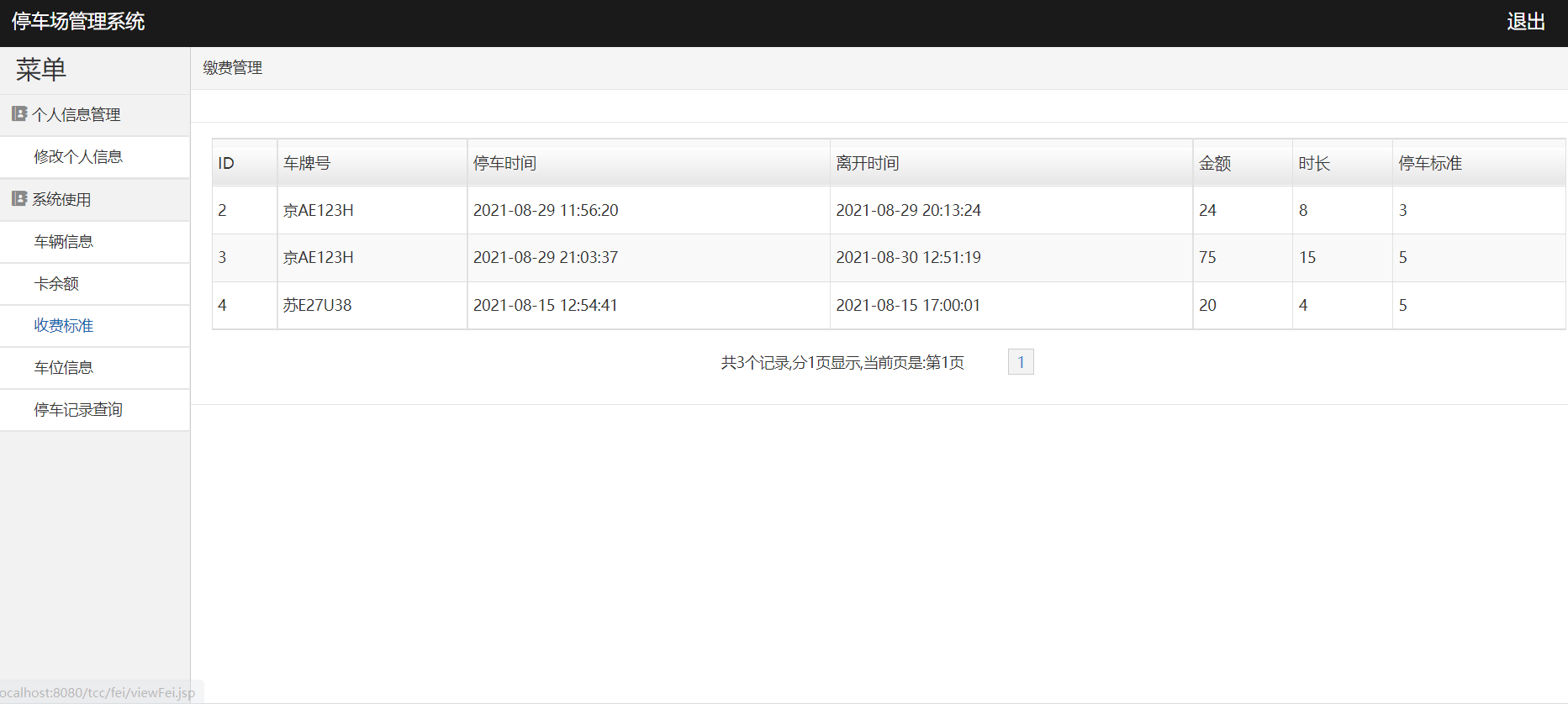 《基于JavaWeb实现的停车场管理系统》