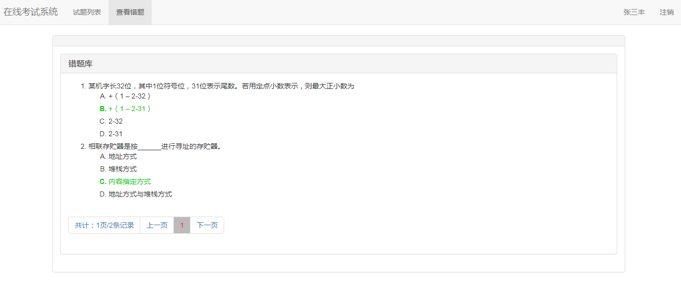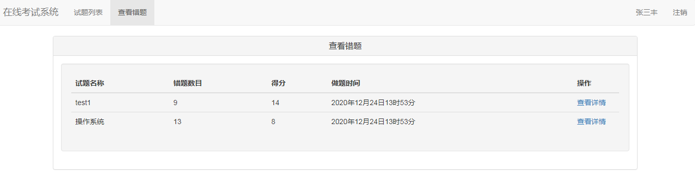 网络考试模块:可参加考试,并查看考试结果,提交试卷后老师允许的情况下查看错题;