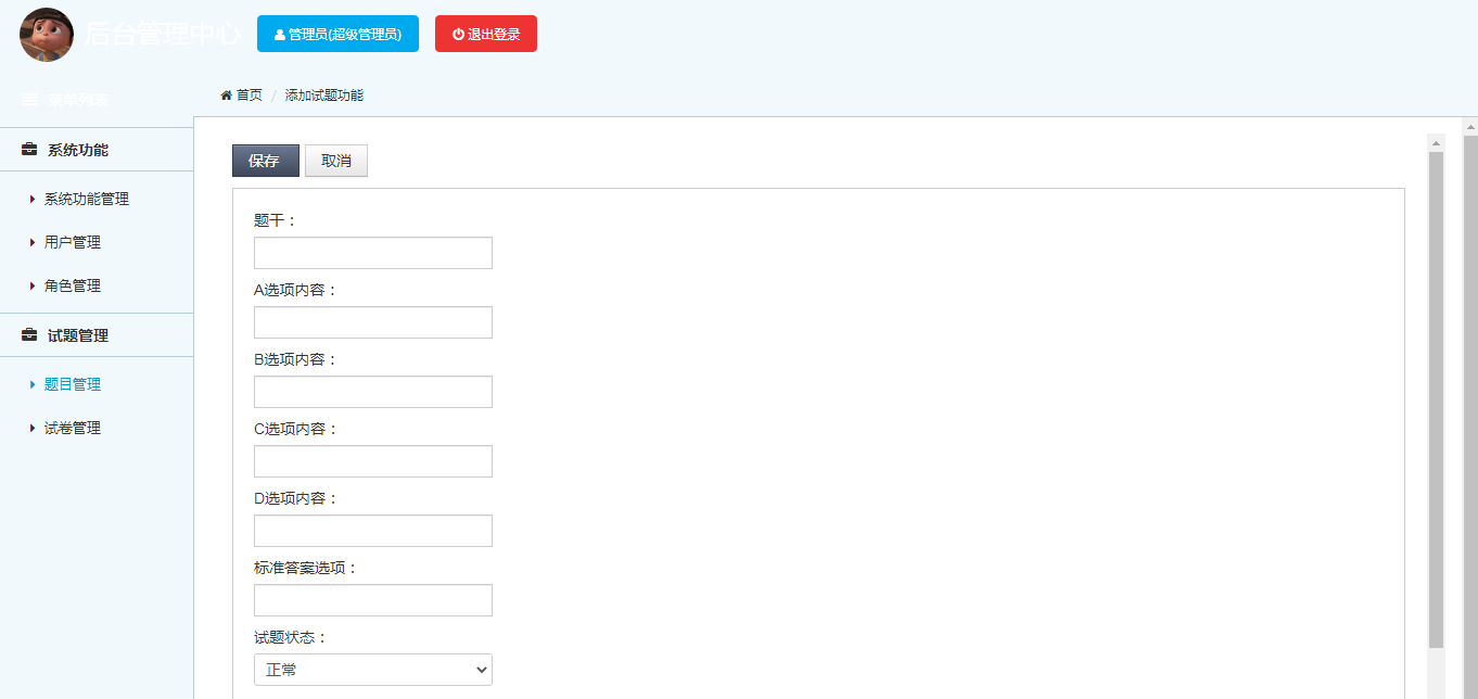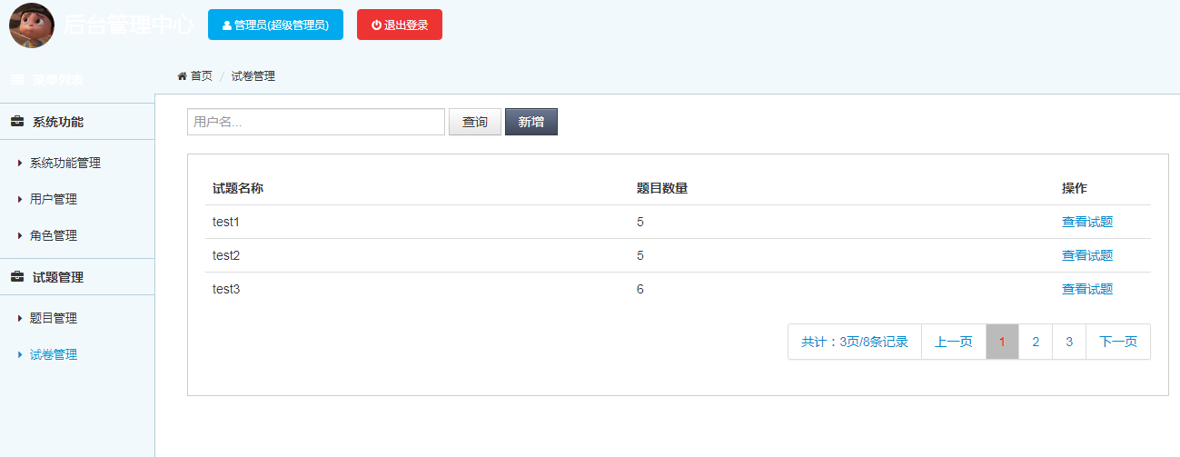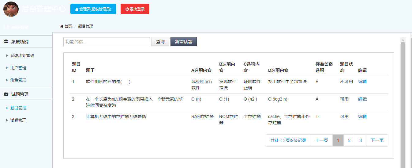 试题管理模块:实现试题信息的增加、修改、查看功能;