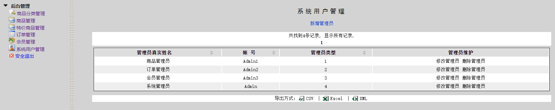 |--系统用户管理 主要功能实现管理员的添加,修改,删除 ,查询